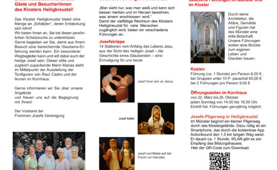 Neues Jahresprogramm für 2026Das Programmangebot für das nächste Jahr liegt in gedruckter Form vor. Bestellungen nimmt das Wallfahrtsbüro (Mail: elisabeth.Buck[at]josefs-wallfahrt.de) entgegen. Neu ist Wallfahrt am Josefstag! Josefs-Ausstellung für Führungen geöffnetBis zum Josefstag im März ist für Gruppen eine Führung auf Anfrage möglich. Die Josefs-Ausstellung eignet sich auch gut als spiritueller […]